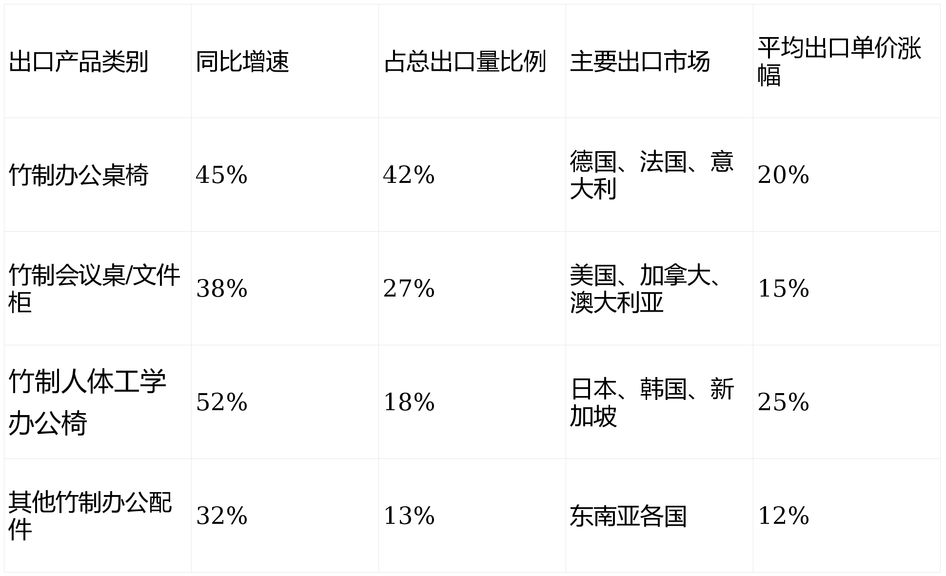 结合走访调研情况,记者梳理出2026年1月南平竹制办公家具出口量大幅增长的三大核心支撑要素,这也是当地产业持续发力的重点方向: