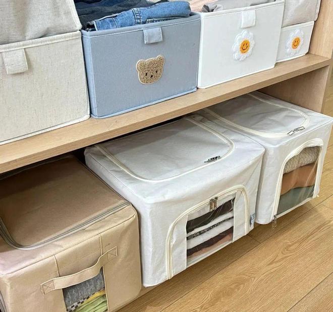 其实衣柜布局在合理,往往最后发现,还是满满当当。所以,添置一些收纳箱,确实是很有必要。