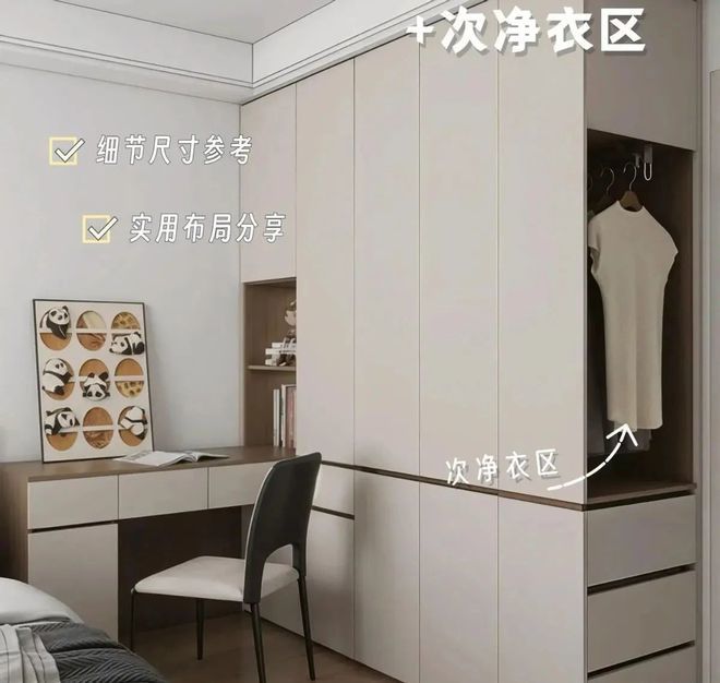 平时回到家以后,换下的衣服,顺手就挂在挂衣区。床上床头柜上,就没有衣服了。久而久之,就形成了习惯,卧室就非常干净。